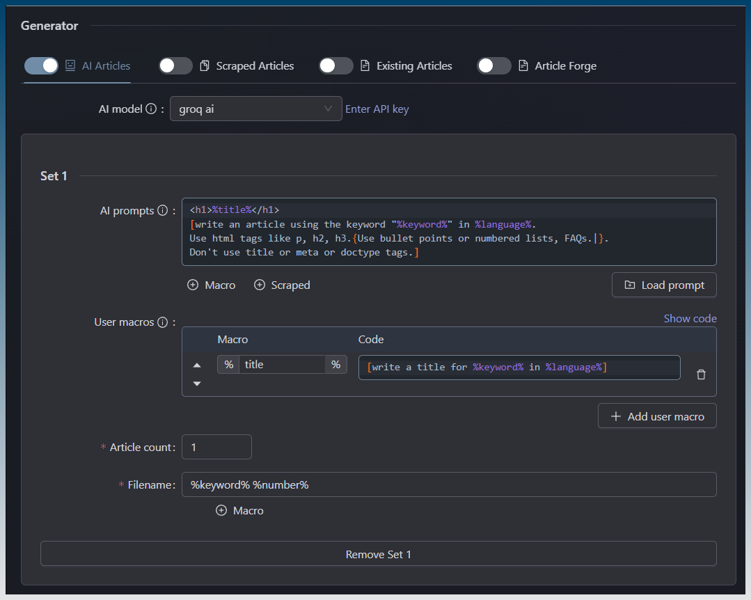 Specifically, to be able to transition the GSA SER template that exists only as scraped article, to the AI writer as its own template.