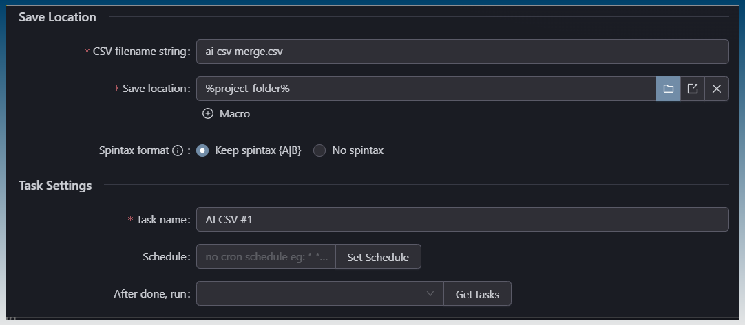- Uses existing CSV data as contextual variables (%column%) in AI prompts.