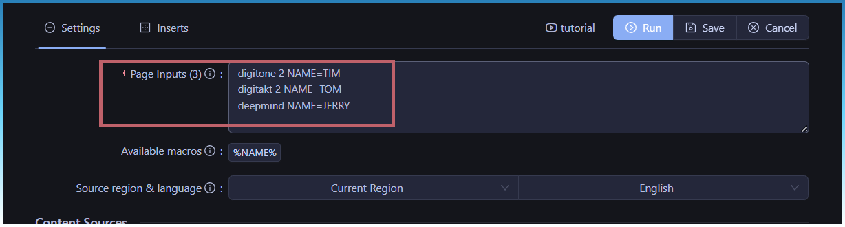 Keywords → Page Inputs