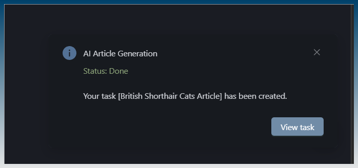 When its done you will have a view task button
