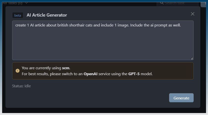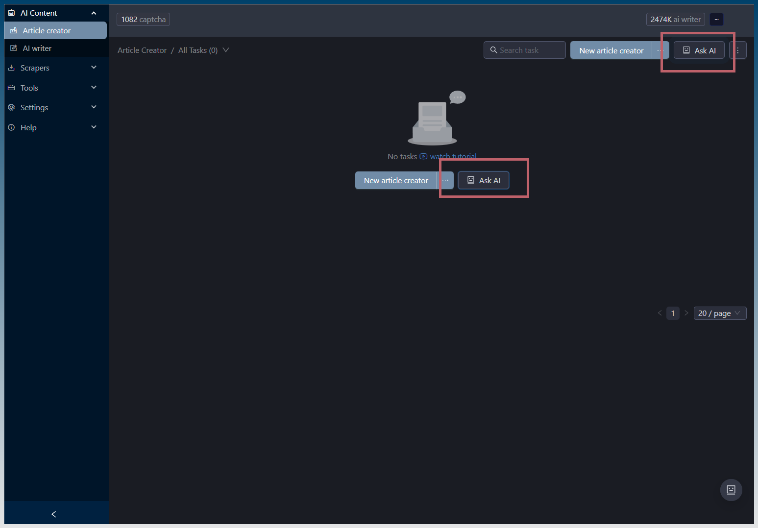 After adding Ask AI to dynamic scraper, I have added one to the article creator.