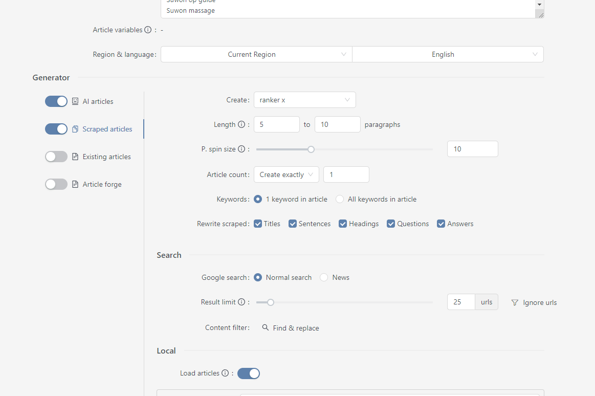 I’m planning to generate 10 articles per keyword and use them in RankerX.