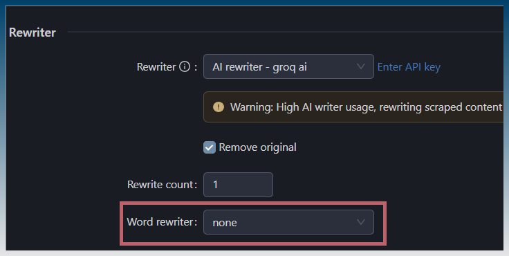With the AI being a valid rewriter option, its possible now to have the AI create spintax text with {|} symbols.