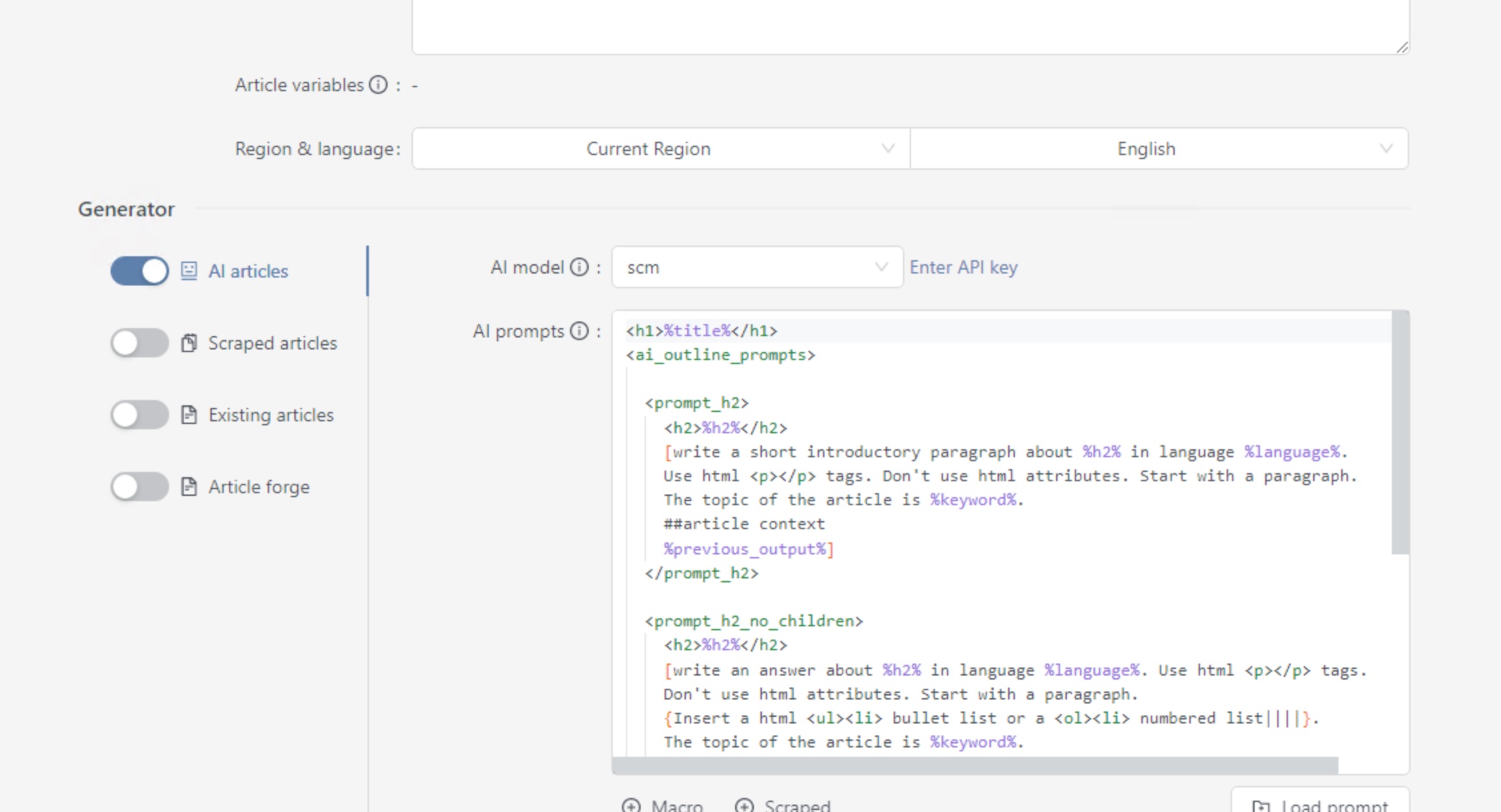 I just enter the endpoint and API key, and it can generate articles.