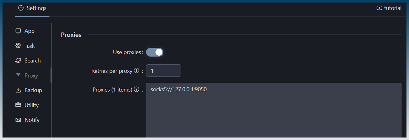 From what I can find, it requires you run a tor proxy server locally on your PC, then connect to it using socks proxy.