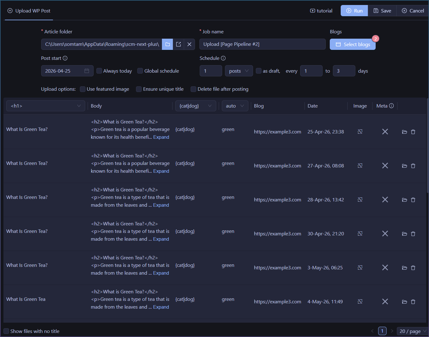 Select blogs from page pipepline